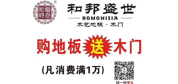 中国木地板知名品牌“和邦盛世”,是由香港鹏邦集团与加拿大F&L WOOD INDUSTRY CO., LTD. 于1999年在中国共同投资成立的佛山市鹏邦木业制造有限公司出品。经过12年的迅猛发展,鹏邦已成为中国林产工业化的大型骨干企业之一;是全球多家知名品牌地板原材料采购基地、出口基地、OEM生产基地。 鹏邦木业在中国及北美拥有超过150万亩的优质林场及原木加工厂;在南美及云南、黑龙江建立了庞大的选材基地;并相继在广东肇庆、广西容县、宾阳等地种植了超过30万亩速生桉林,兴建起两大地板基材厂。鹏邦木业强大的资源优势和完善的产业链,实现了林产一体化运营,产业涉及原木、木皮、基材、地板等木制品的生产、研发和销售。 活动地点:中山石岐区青溪路70号富逸装饰广场二层27-29卡 0760-88803331 地板消费满1万元即送和邦盛世高档实木门一套(有2款颜色可选,因拍照光线问题实物比图片更漂亮,可非标定制)