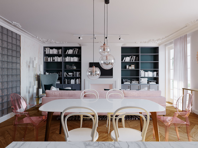一些户型较小的居室,往往将书房的功能与客厅进行合并,因此客厅会有大量的书籍需要进行收纳。常见的收纳方式是在沙发边设计开放式书柜,既方便拿取,又不会占用过多的空间。