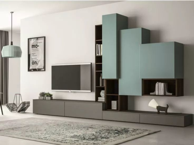 电视柜也可以采用现代式的地柜与吊柜结合设计,会更有个性感。而且居住者还能根据不同时期的需要作相应的变化,可谓是集功能性与灵活性于一体。