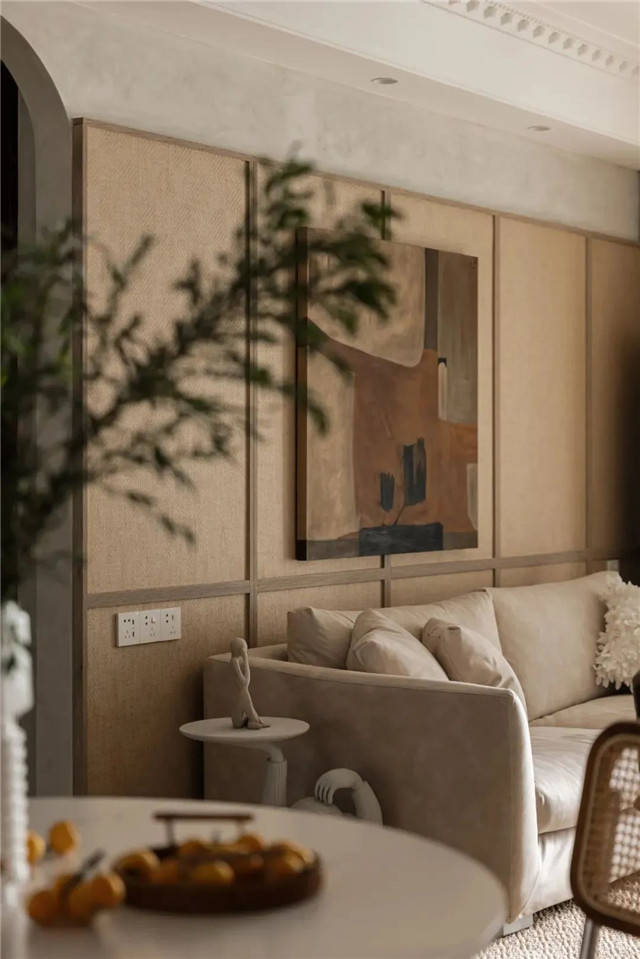 “奶白 布格”的沙发组合,背倚挑高拱形门,秋天的午后,端上一杯奶茶或咖啡,任时光慢慢流淌。