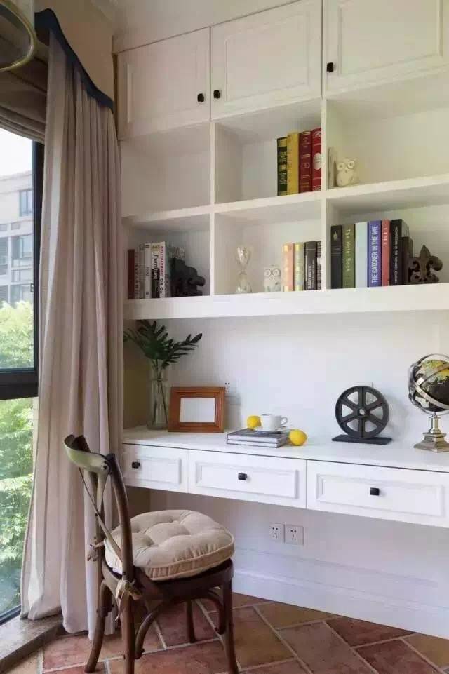3、如果家里是小户型没有书话的话,可以将客厅和阳台打通后,做张书桌和书柜,光线充足,通风方面,绝对比室内的强。