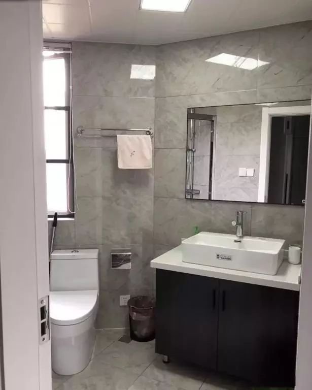 客卫是三段式干湿分离的设计,洗漱台直接设计在了外面,同时还做了木质隔断,把空间合理隔开来。