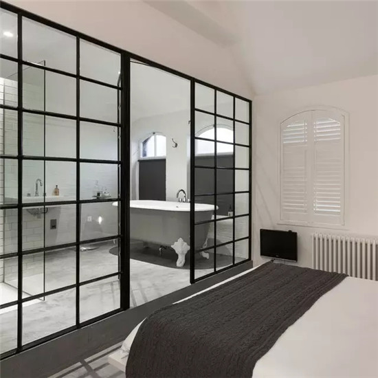 钛镁铝金的隔断门这两年非常火,黑色的铝金边框加上通透的玻璃,很好的做了阻断和通透空间的效果。用在卧室和客厅之间绝对不会出错,如果觉得太亮,在卧室内加一圈窗帘就可以很好的遮光啦!