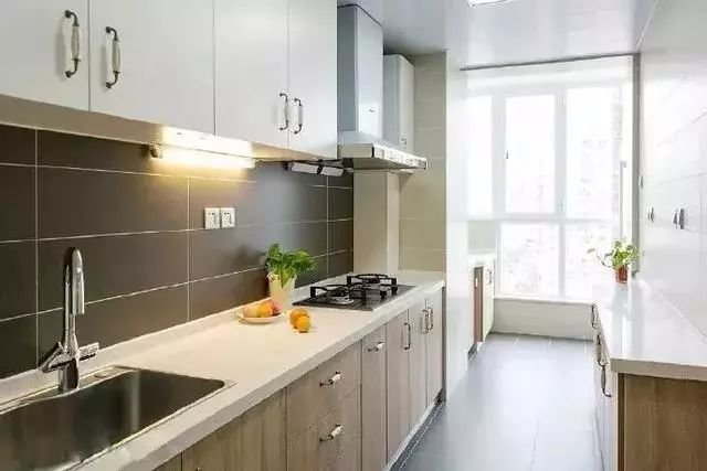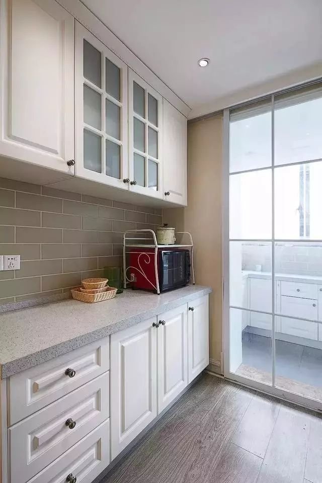 把整个小阳台包进来之后,能够让厨房显得更加的宽敞,而且也可以多做一些橱柜、吊柜,就不用担心厨房内的储物空间不足了。