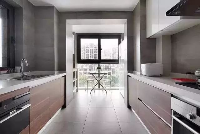 还有一种做法就是把阳台包进厨房内,通常都是因为客厅、卧室外的阳台被改成了生活阳台,这样厨房的阳台就可以随意设计了。