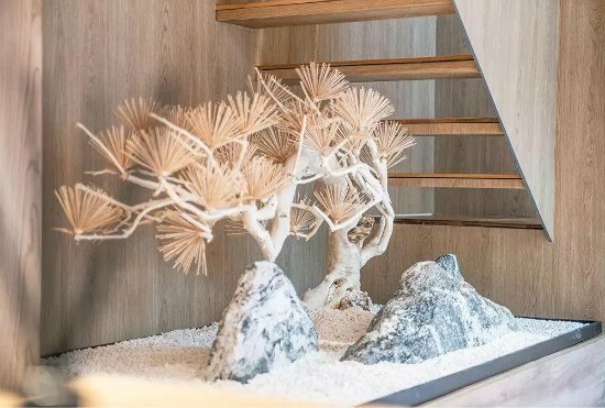 慢享惬意时光,细品生活意趣,书房的思想创作空间更应该开放自然,同时也要为未来的生活创造新的体验感。端景的日式枯山水,为空间创造出一道美丽的风景线。