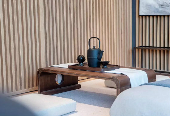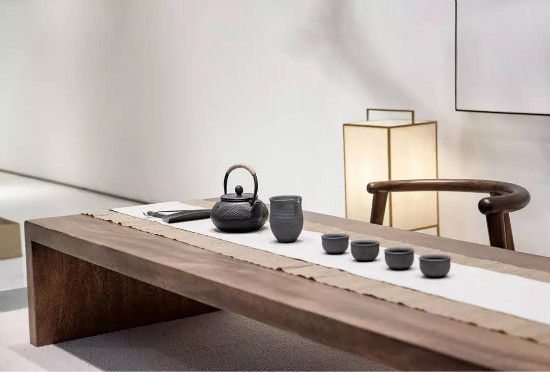 茶至无味仍余香,人若无妄心自清。因此茶室设计上着力实现如此格调,空间色调清雅纯净,实则是将茶艺的诗意于空间之中层层递进,地板、桌椅,乃至装饰挂画与茶具的摆设不仅造型古典雅致,还保持了格调与质感的一致。