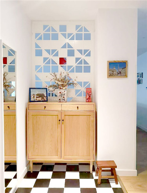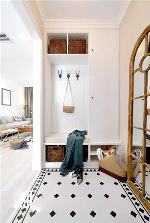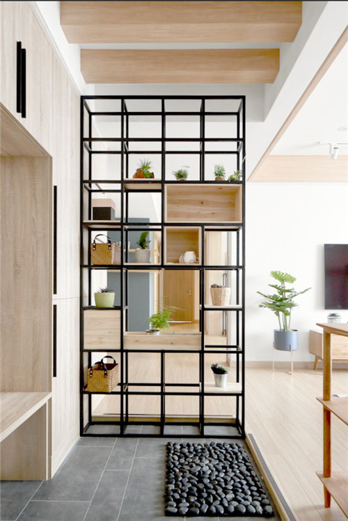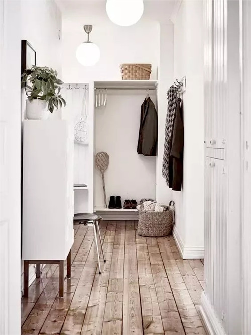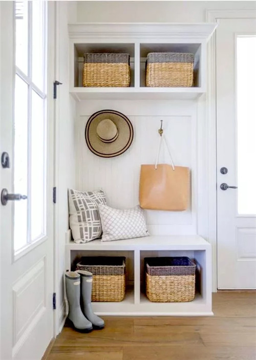 那么家里没有玄关的户型,要怎么补救?这个要分两种情况,如果进门空间比较紧凑,那就想方法放个鞋柜,实现收纳功能,如果进门空间充足,就可以设置一个隔断,实现玄关区的独立。
