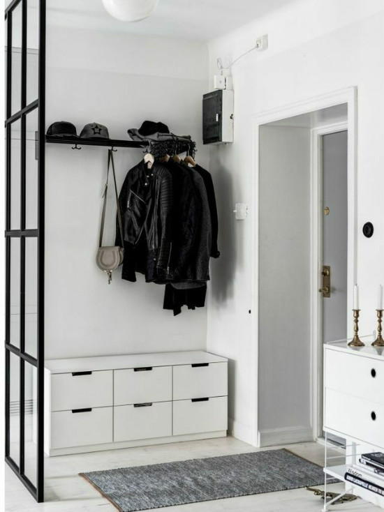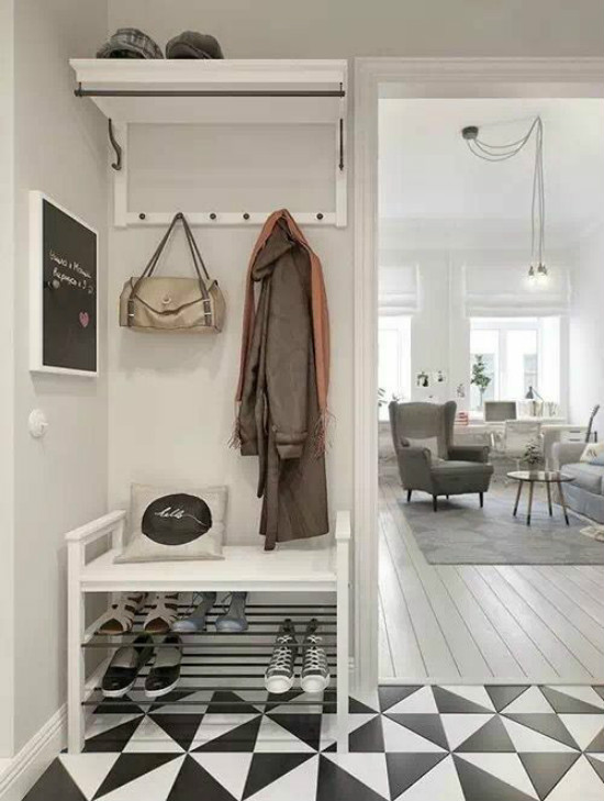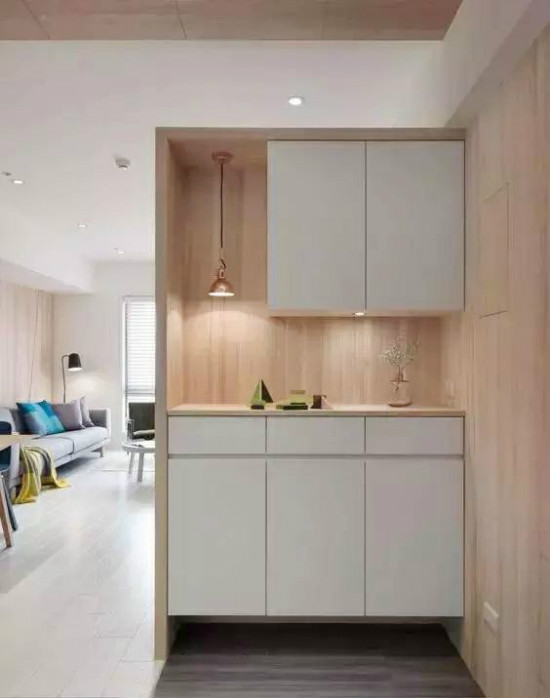 如果户型条件允许的话,在入门处增加一个隔断,用屏风+鞋柜或者屏风+衣柜的方式进行遮挡,既可以满足更多的收纳需求,又能够改变入门气流的走向,巧妙地化解大门正对卫生间门的难题。