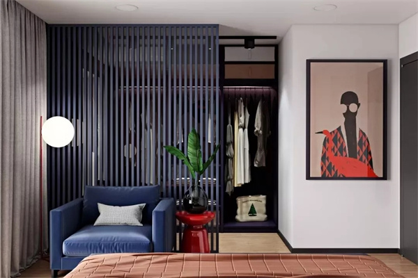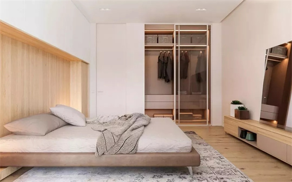 不想牺牲空间的通透感,可以把衣帽间的门改成玻璃或格栅,让卧室看起来更敞亮。
