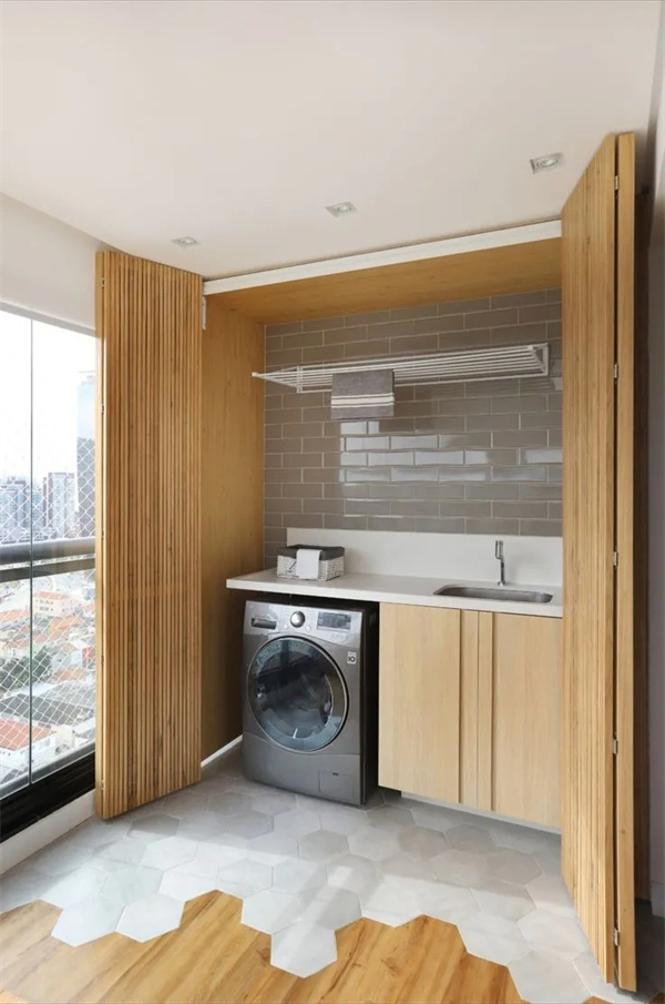 相对来说,做杂物间和洗衣柜的比较多,但也有不少人考虑做衣帽间,提醒下,最好是避开白色的柜门,避免用久了会发生黄边。
