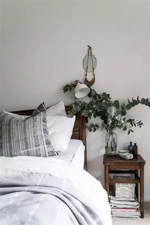 传统床头柜的缺点在于它往往占用的空间比较大,并且缺少个性化与时尚感,年轻人的房间可以在传统床头柜的基础上做减法,让空间更有艺术气息。例如小而精致的边几、灵活多元的凳子、风格多样的小推车、悬空上墙的置物架,都是很不错的替代选择,低效空间都利用起来!