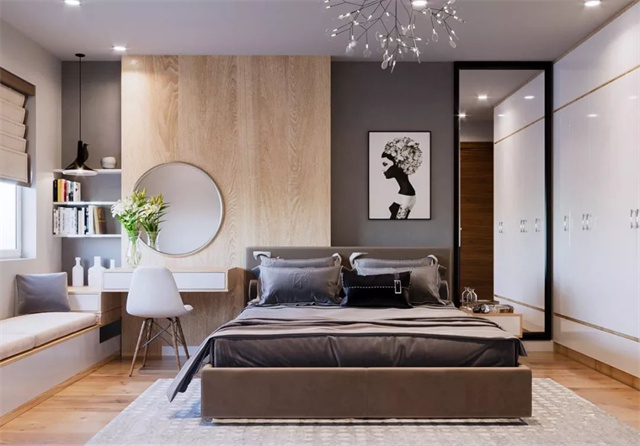 现代家居设计的流行趋势,是丢掉不必要的家具,让家更宽敞更有质感。卧室的面积大多在15㎡左右,不宜过大。如果承载过多的储物功能,会让人感觉局促不安,所以合理的收纳规划非常重要。