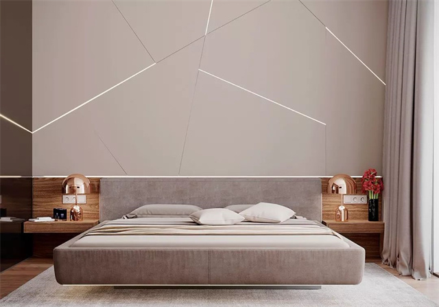 同时尽可能地给人以柔软的触摸感受与温馨的视觉体验,尽可能减少动态的物品,例如电视,其实已经慢慢的从卧室中被搬离出来,毕竟卧室是睡觉的地方,更多静态的东西,让人快速的安静下来,安然入梦。