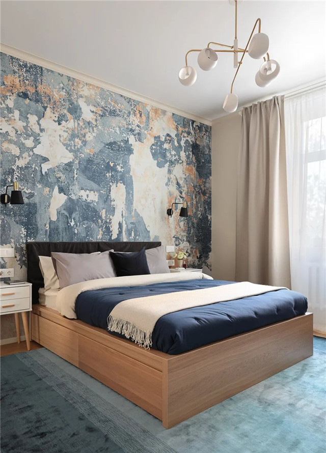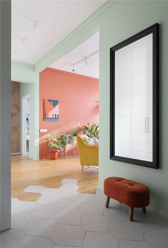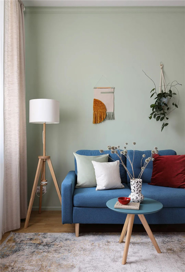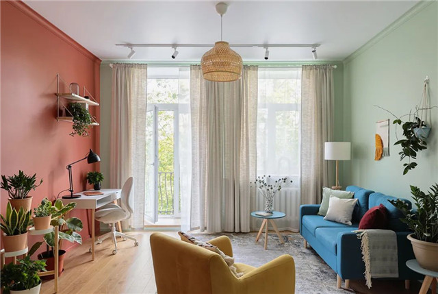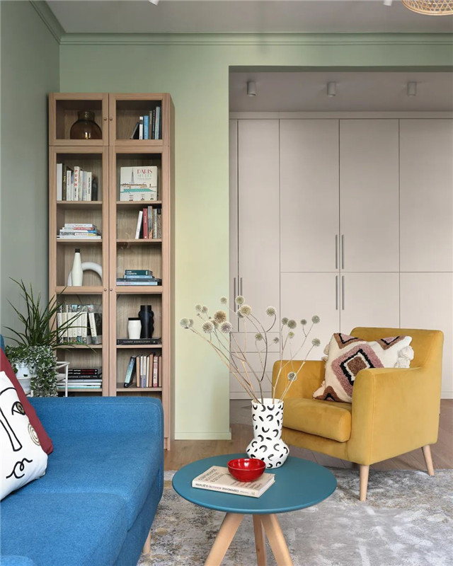 这个诱人的住宅设计有一个紧凑的客厅,充满艺术元素和色彩斑斓的活力。中山帮忙装修网公司分享。
