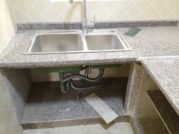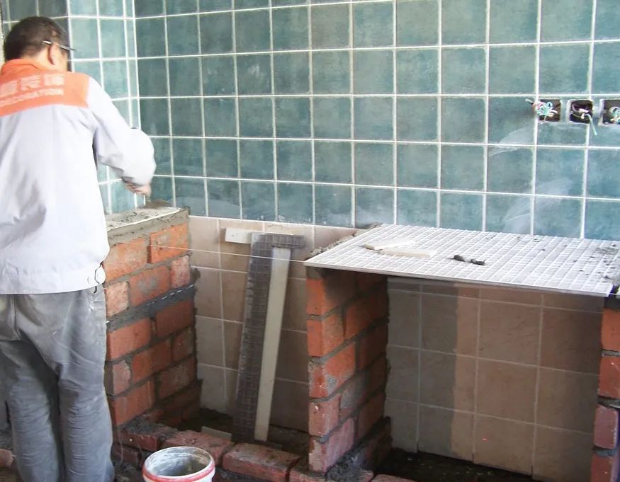 砖砌橱柜,用红砖砌,表面再贴瓷砖。
