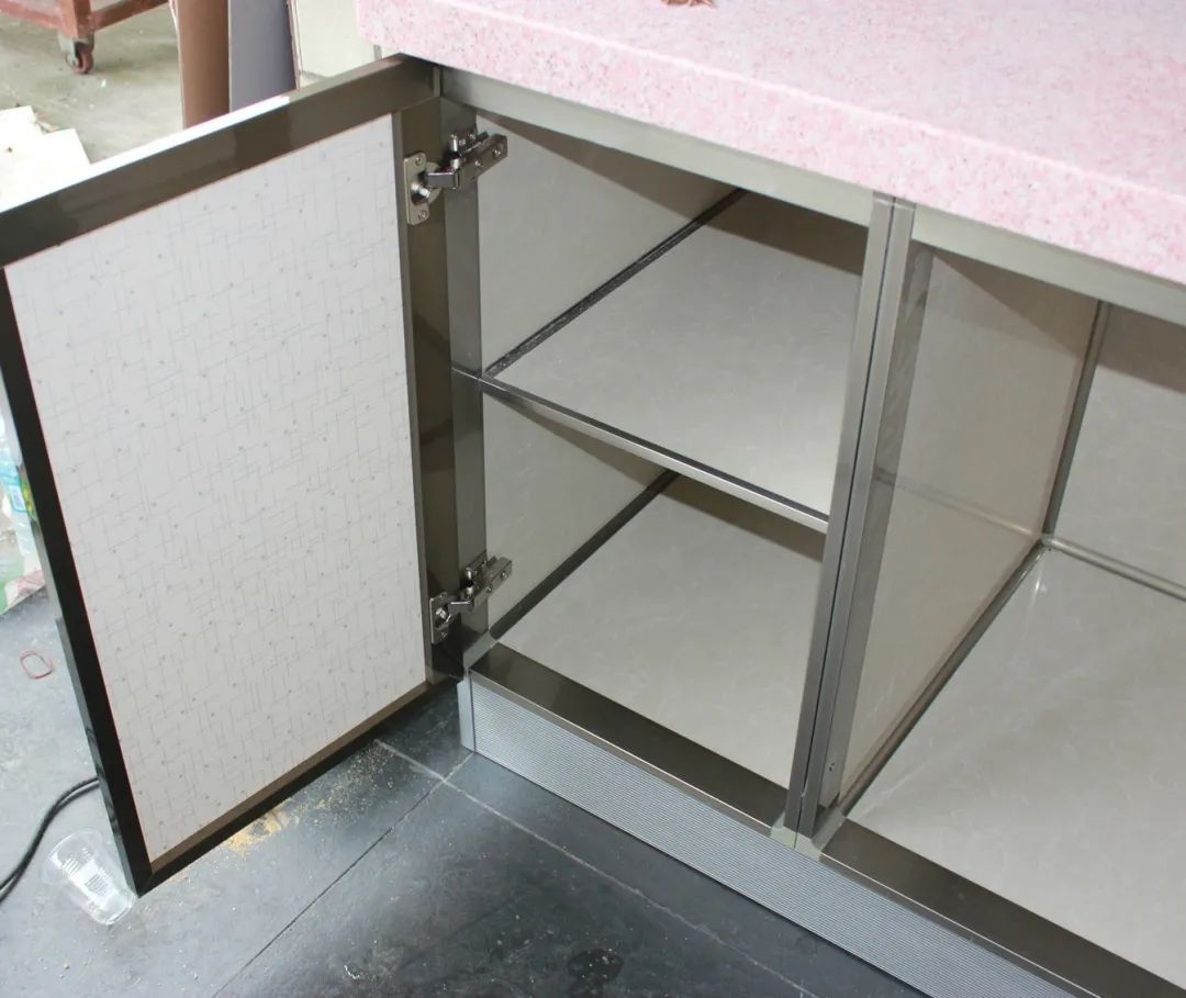 陶瓷橱柜,是铝合金的框架,嵌上陶瓷板。