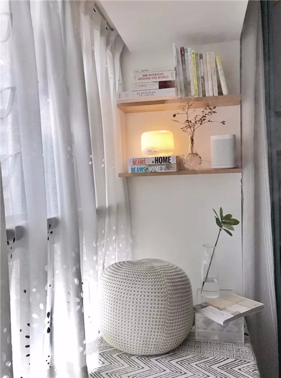 3)一盏可以调节和移动的落地灯,让阅读灯光更适合。这三个要素都不需要前期改造,想要阅读的时候临时准备就可以了,不需要砸墙各种,最省力省时。