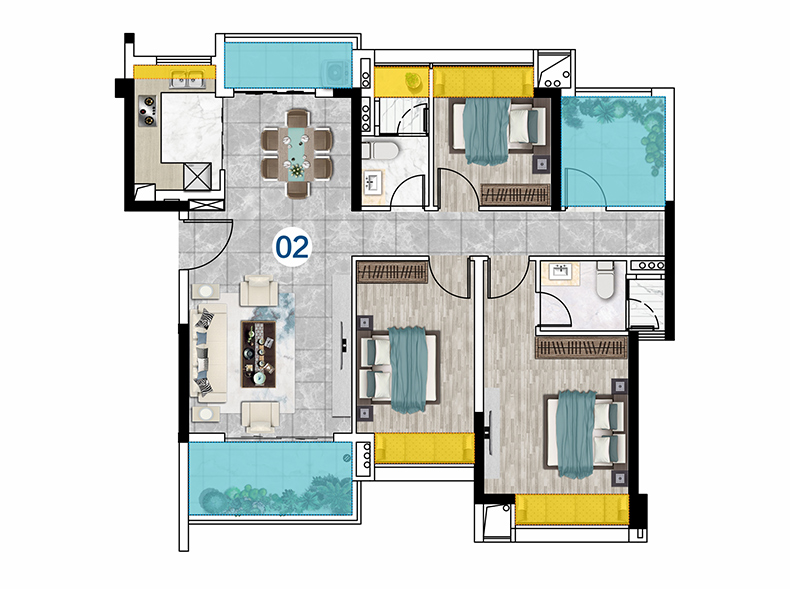 建筑面积约89-140㎡ 三-四房精装匠品,临江递进式布局,确保江景入户,约7米景观阳台,开阔视野,大尺开间,N+1高赠送空间,品质精装,畅享质感生活。